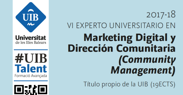 Todos los miembros de la Associació de Periodistes de les Illes Balears (APIB) tienen un 10% de descuento en la matrícula del posgrado de Marketing Digital y Dirección Comunitaria (Community Management) de la Universitat de les Illes Balears (UIB) que empieza el 24 de octubre. Esta prevista una sesión informativa el miércoles 27 de Septiembre a las 18.30 h. en el edificio de Sa Riera, Calle de Miquel dels Sants Oliver, 2, 07122 Palma. Más información aquí.