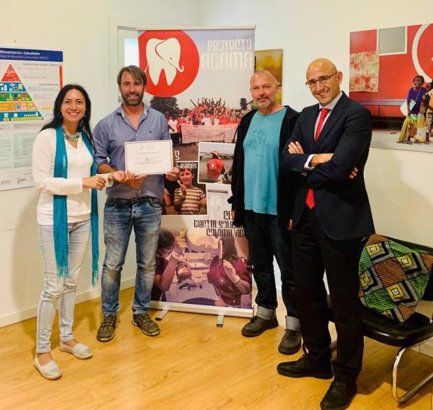 Ángeles Durán, Alfonso Jaume, David Oliver y Toni Sánchez Grao, este miércoles en la sede de Dentistas Sobre Ruedas.
