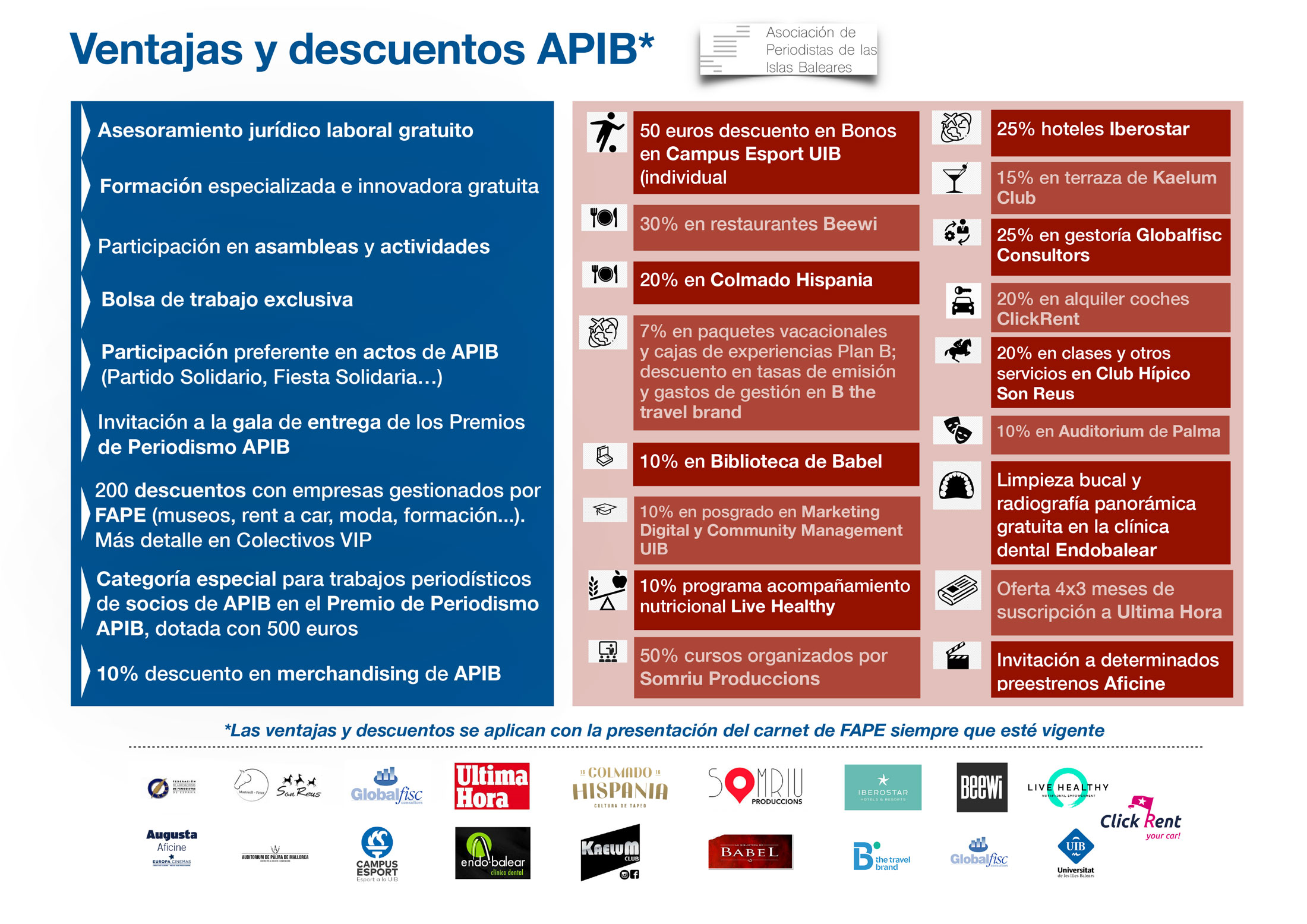 Tenemos grandes retos en 2020. Necesitamos a todos los periodistas de las islas para crear una organización fuerte que defienda la profesión. Hacerse socio de APIB es muy fácil y sólo cuesta 50 euros al año. Además, recuperarás el dinero gracias a los descuentos que hemos firmado con empresas y universidades.