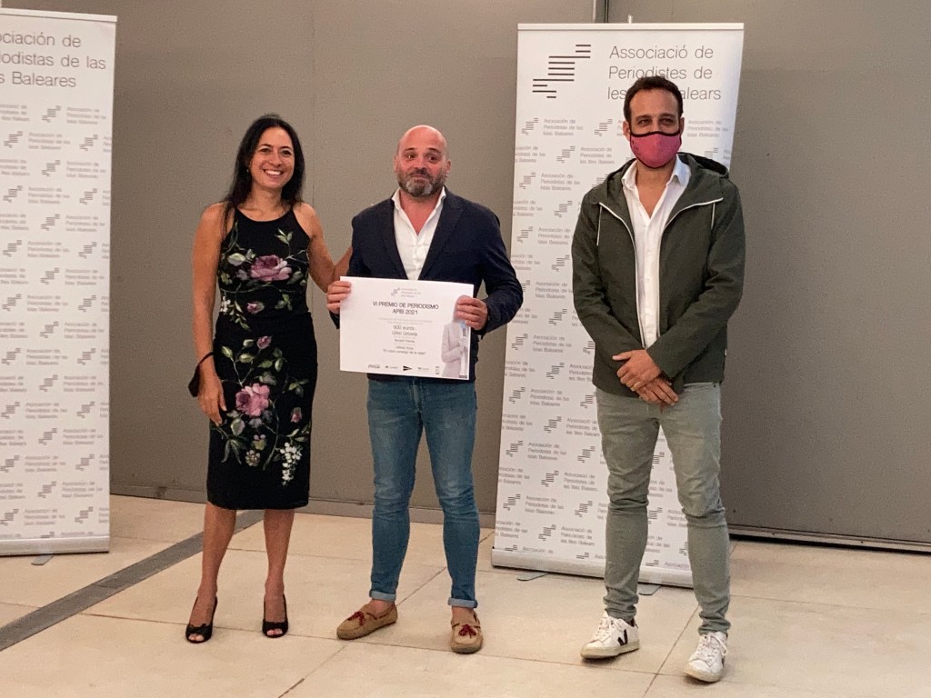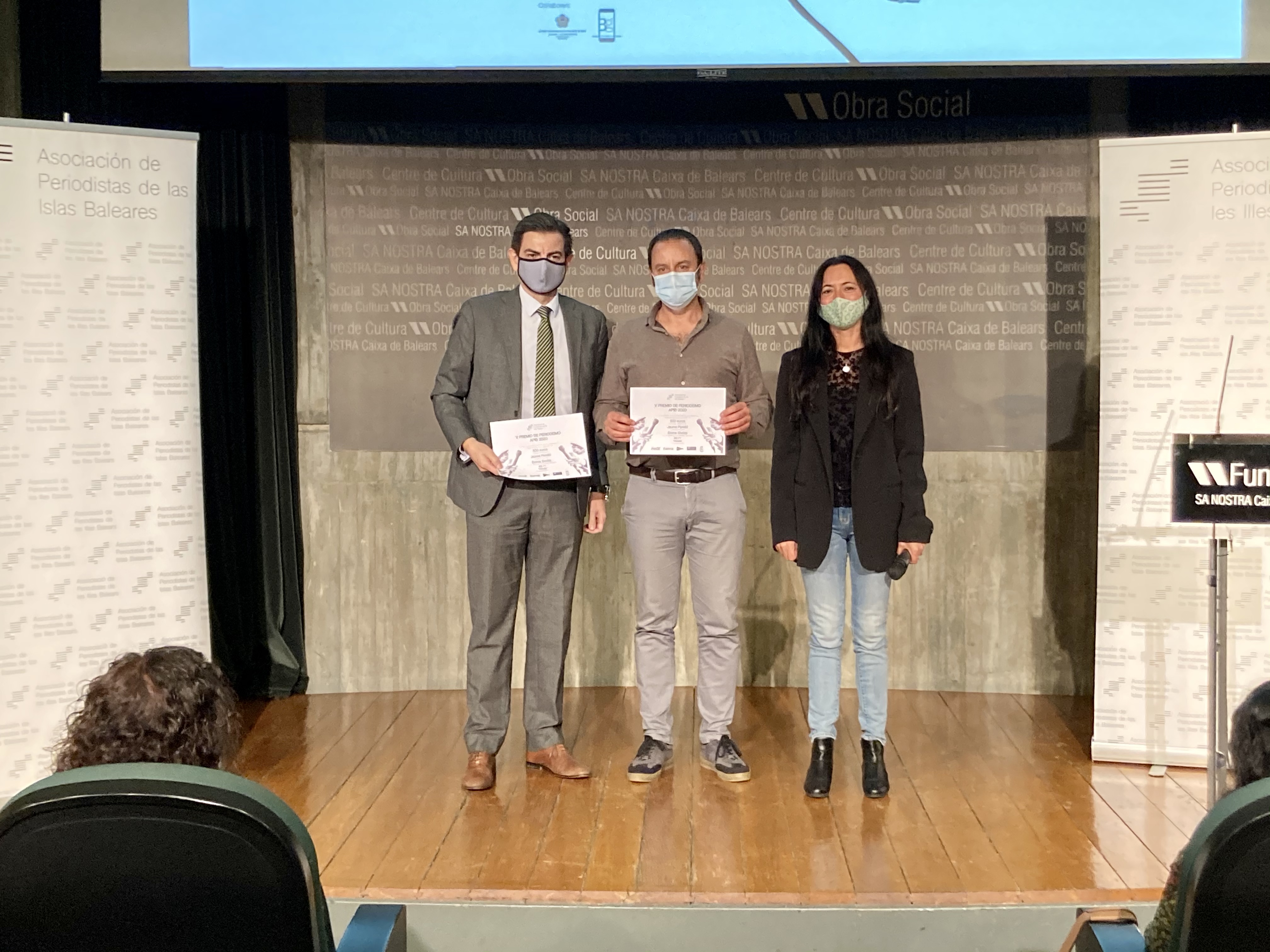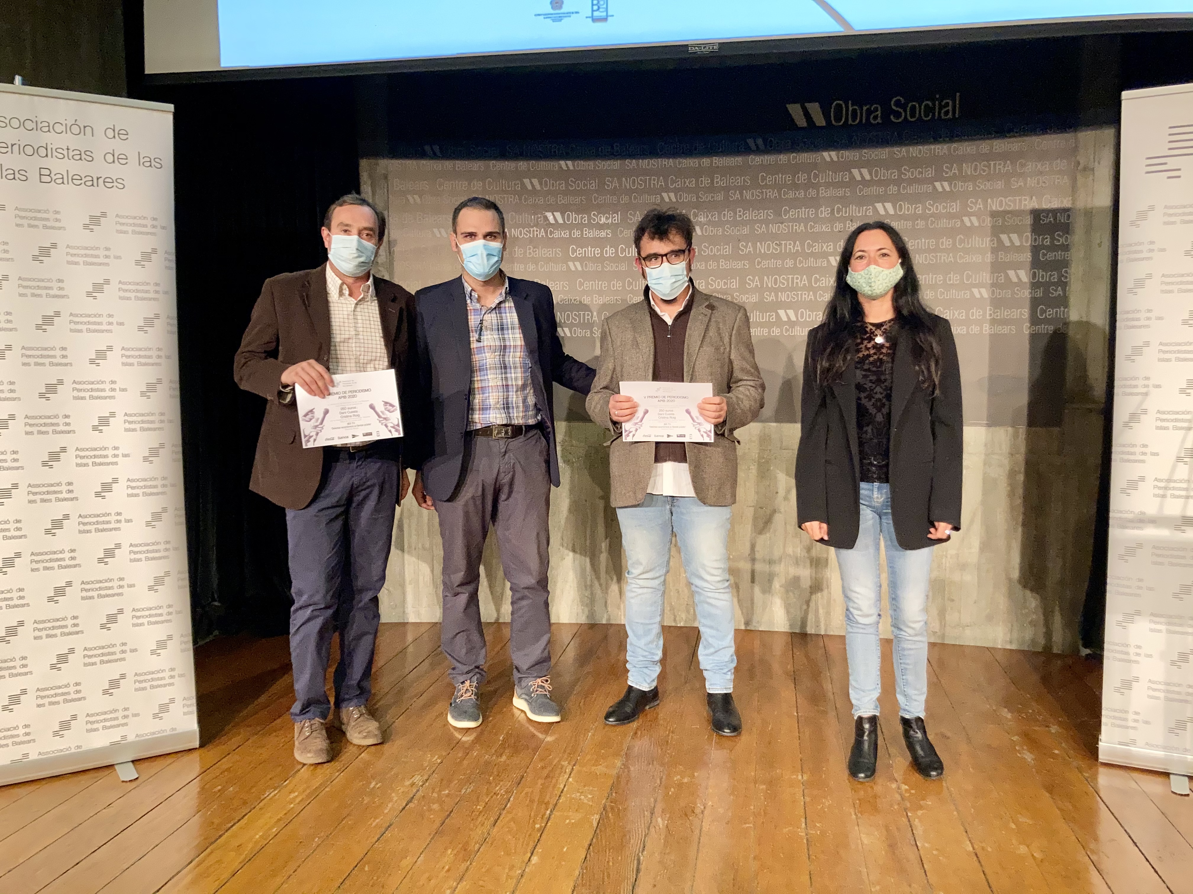 El premio cuenta con tres accésit para prensa escrita y digital, radio y TV, y un cuarto accésit para periodistas socios de APIB, dotados con 500 euros cada uno. El jurado ha otorgado dos Accésit de Prensa: a Urko Urbieta, de Ultima Hora, por su reportaje ‘El rostro amargo de la vejez’, y a Ricardo F. Colmenero, de El Mundo, por su reportaje sobre el fin de confinamiento de Formentera ‘Se abren las puertas de Manhattan’, quienes lo han recibido de manos del director general de Comunicación del Govern, Álvaro Gil, y el director de Comunicación de Coca Cola, Biel Mulet, respectivamente. El premio de Colmenero, ausente por su participación en el VIII Congreso Internacional de Periodismo, en Málaga, lo ha recogido el ex director de El Mundo Tomás Bordoy. El jurado ha destacado esta pieza entre todas las candidaturas por su excelente estilo y escritura.